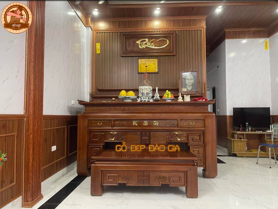 Tuy nhiên, chúng tôi hiểu rằng mỗi gia đình có một không gian riêng biệt. Vì vậy Gỗ Đẹp Đào Gia cung cấp dịch vụ đặt kích thước theo yêu cầu. Giúp bạn có thể điều chỉnh bàn thờ sao cho phù hợp với diện tích và phong thủy của căn phòng. Bạn có thể yêu cầu thay đổi chiều cao, chiều rộng hoặc độ sâu của bàn thờ để phù hợp với không gian thờ cúng nhà mình. Đảm bảo rằng bàn thờ sẽ trở thành một điểm nhấn hoàn hảo trong ngôi nhà.
