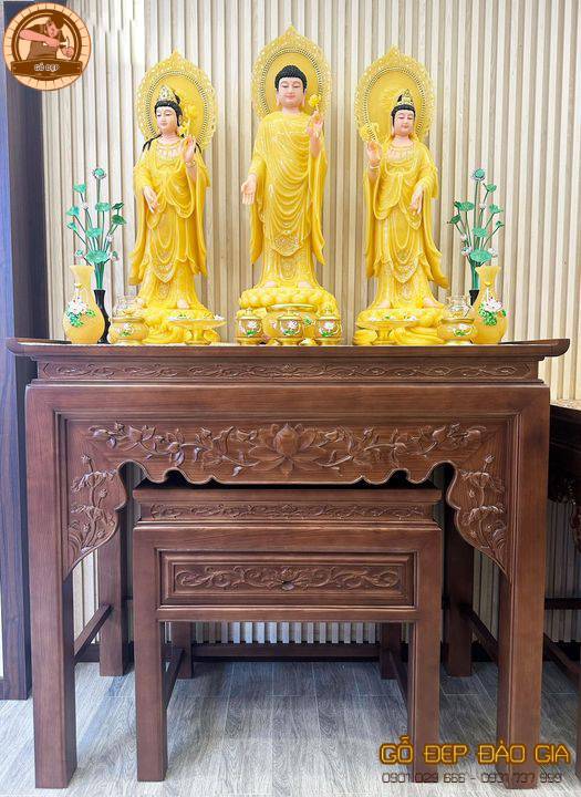 Bàn thờ Phật của Gỗ Đẹp Đào Gia phù hợp để sử dụng trong nhiều mục đích thờ cúng khác nhau, từ thờ gia tiên, thờ tổ tiên cho đến thờ Phật. Với thiết kế trang nghiêm và thanh thoát, sản phẩm này mang lại không gian linh thiêng. Giúp bạn thể hiện lòng thành kính và tôn trọng đối với tổ tiên và các vị thần linh. Không chỉ vậy, bàn thờ này còn góp phần tạo dựng không gian thờ cúng truyền thống. Thể hiện nét văn hóa đặc sắc trong mỗi gia đình Việt.