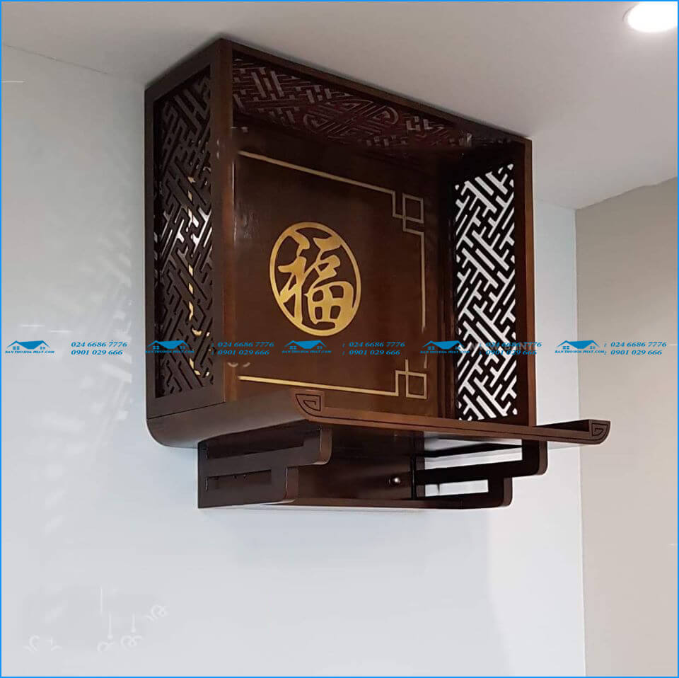Sản phẩm được làm từ chất liệu gỗ tự nhiên, sơn PU cao cấp giúp tăng độ bền và độ bóng của sản phẩm. Bàn thờ treo HP 9002 có kích thước nhỏ gọn, dễ dàng lắp đặt và vệ sinh.