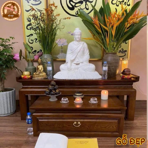 Tận Hưởng Sự Bình An Với Bàn Thờ Phật Tại Gia - Sản Phẩm Độc Đáo Ngang 127cm, Sâu 610cm, Cao 690cm