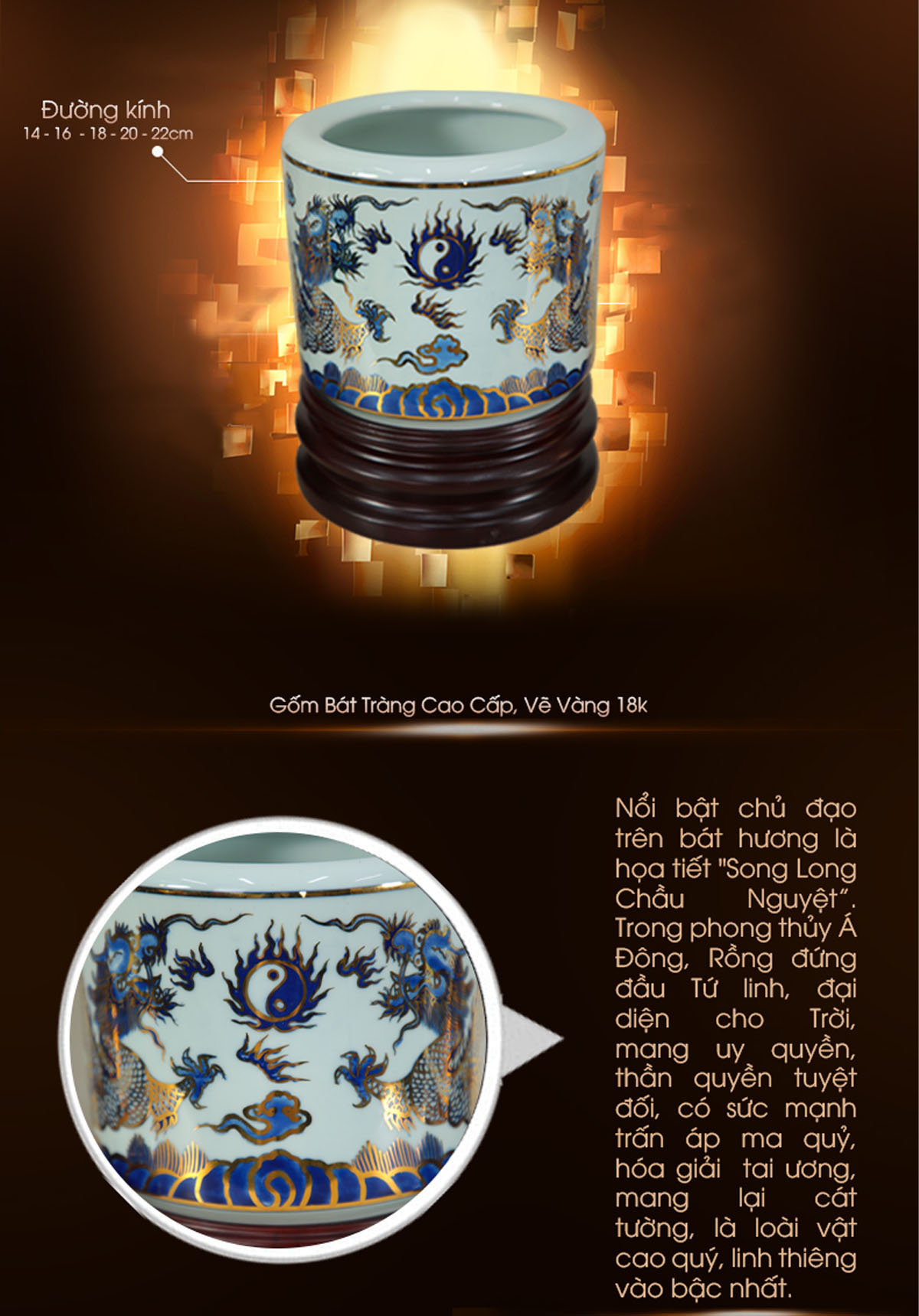 Bát Hương Rồng Ngũ Phúc Vẽ Vàng 16cm 3.650.000đ
