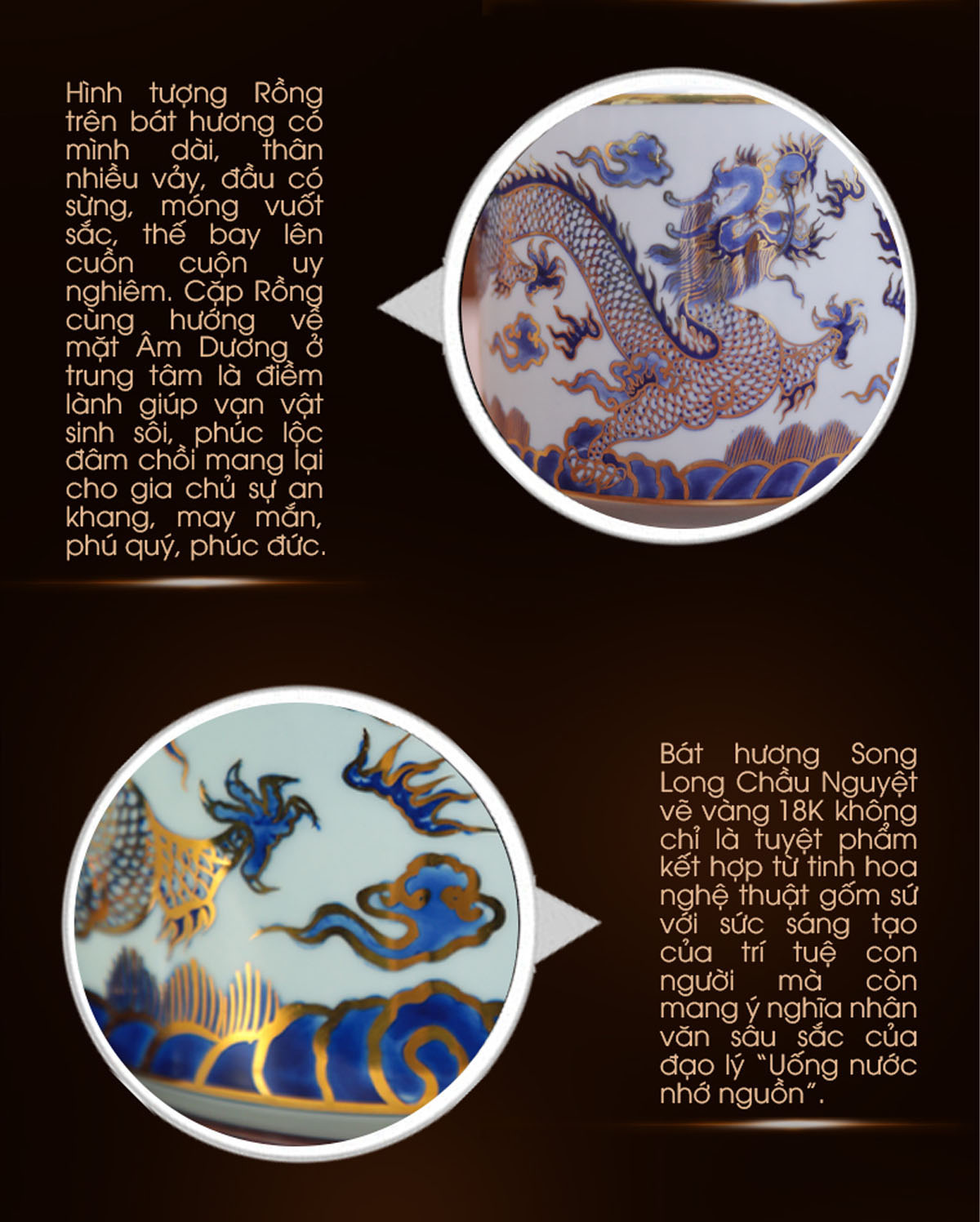Trong nền văn hóa phương Đông, rồng là biểu tượng tối thượng của sức mạnh, quyền lực và sự linh thiêng. Rồng không chỉ đại diện cho sức mạnh tự nhiên mà còn là một linh vật bảo hộ, mang lại bình an, bảo vệ gia chủ khỏi những điều xấu và thu hút tài lộc, thịnh vượng. Chính vì thế, hình ảnh rồng được lựa chọn làm chủ thể chính trong thiết kế của bát hương này.