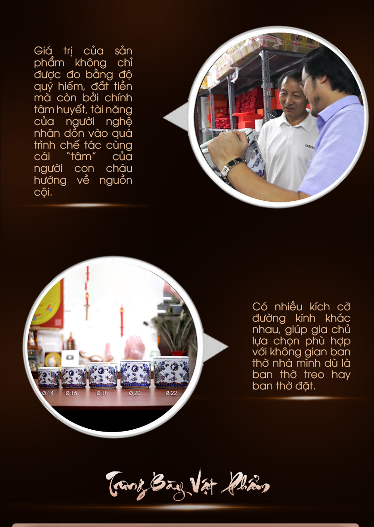Với kích thước nhỏ gọn, bát hương dễ dàng được đặt trong không gian thờ cúng mà không làm chiếm quá nhiều diện tích. Đồng thời vẫn tạo được sự trang nghiêm, tôn kính trong không gian thờ.