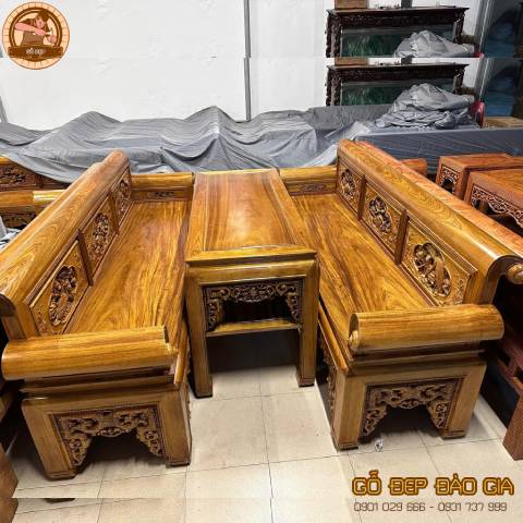 Đây là dòng sản phẩm thường được đầu tư nhiều nhất, thể hiện đẳng cấp của chủ nhà. Các loại gỗ như gỗ hương, gỗ gõ đỏ, cẩm lai, mun… thường được lựa chọn để làm bàn ghế gỗ phòng khách. Kiểu dáng có thể là bộ bàn ghế truyền thống với họa tiết chạm trổ tinh xảo hoặc phong cách hiện đại đơn giản nhưng sang trọng.