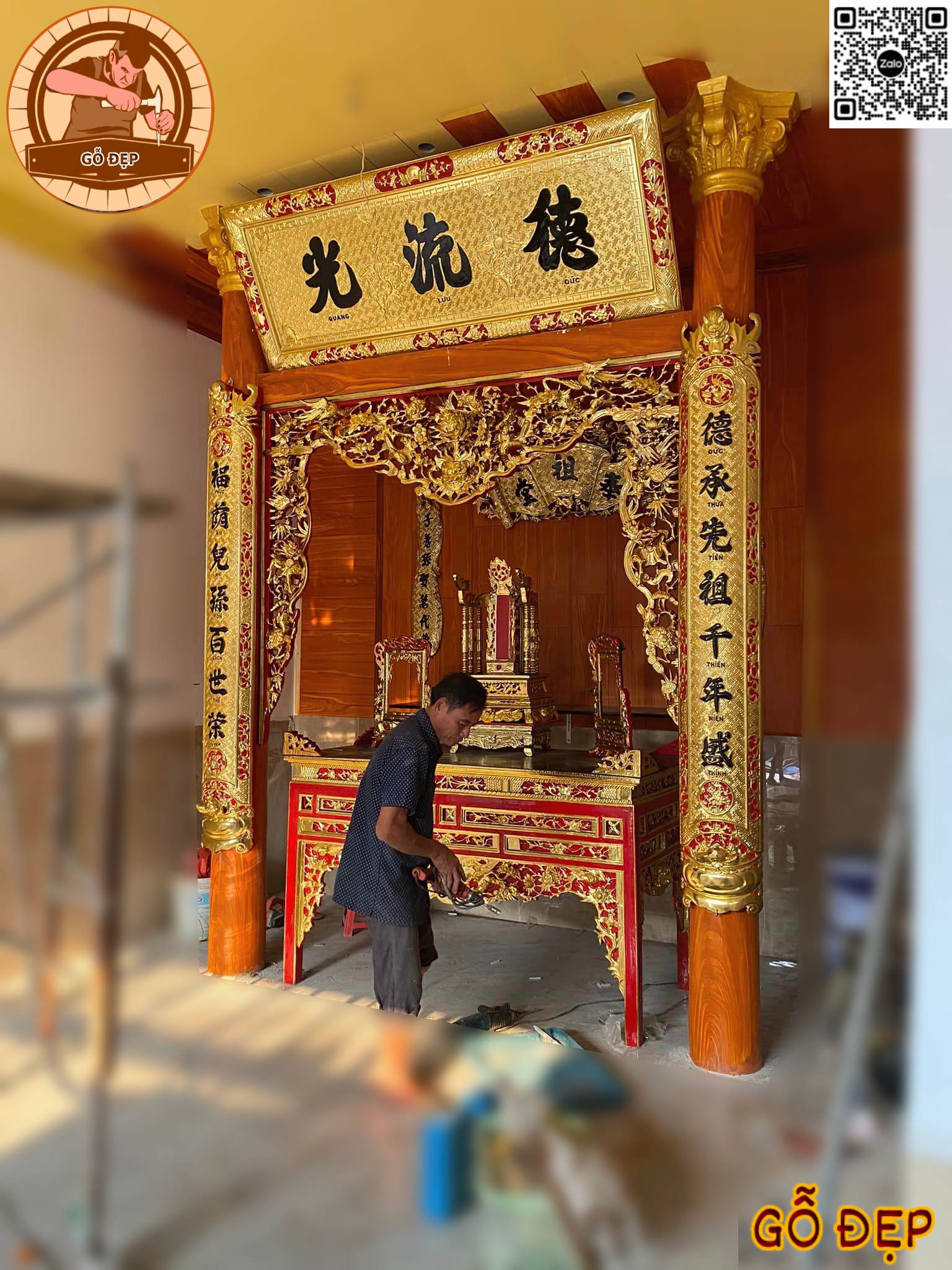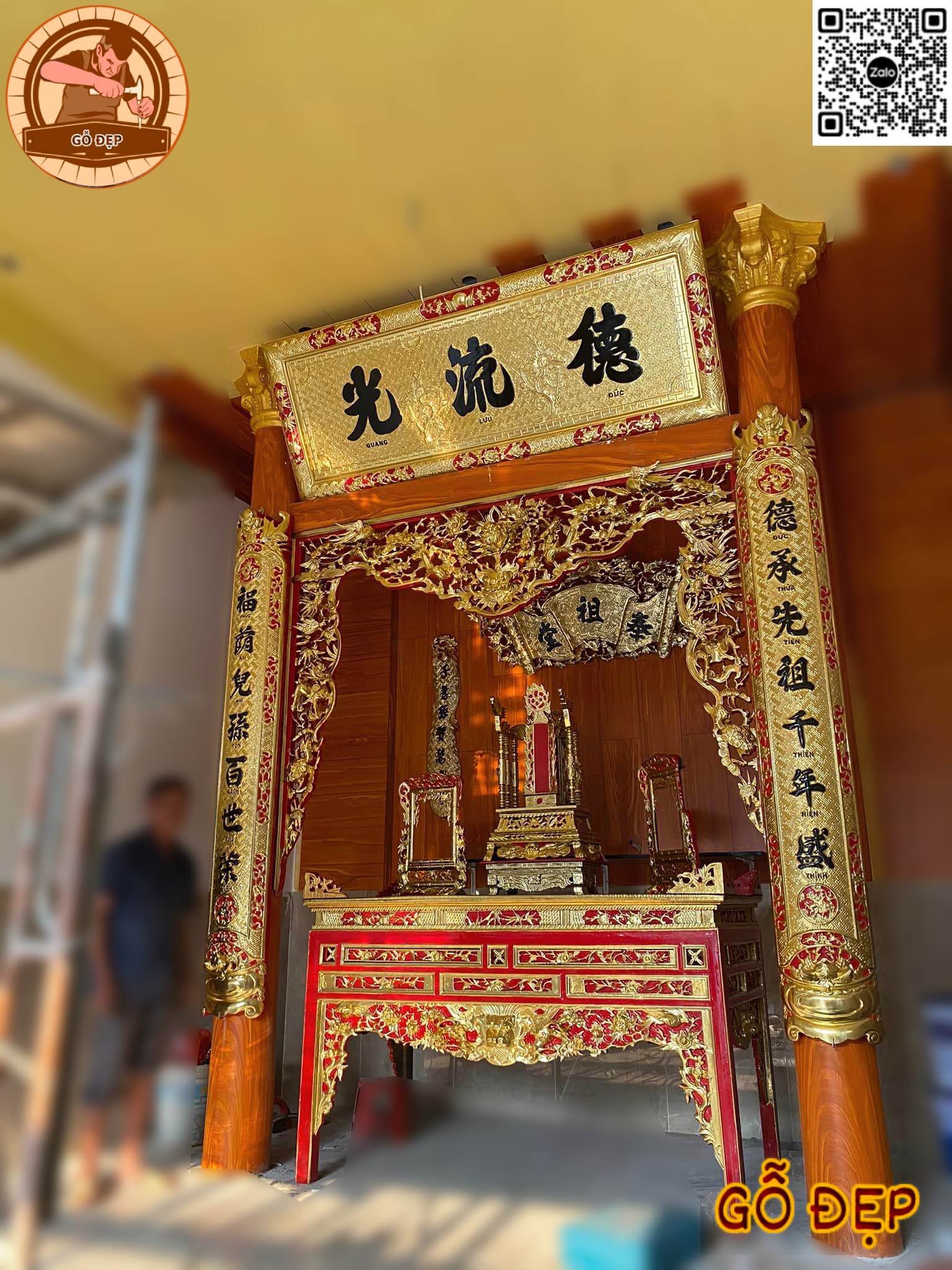 – Chất liệu lót: Sơn son thếp vàng, thếp bạc phủ hoàng kim