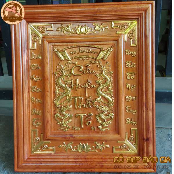 Tranh cửu huyền thất tổ được làm bằng chất liệu gỗ hương tự nhiên 100%.