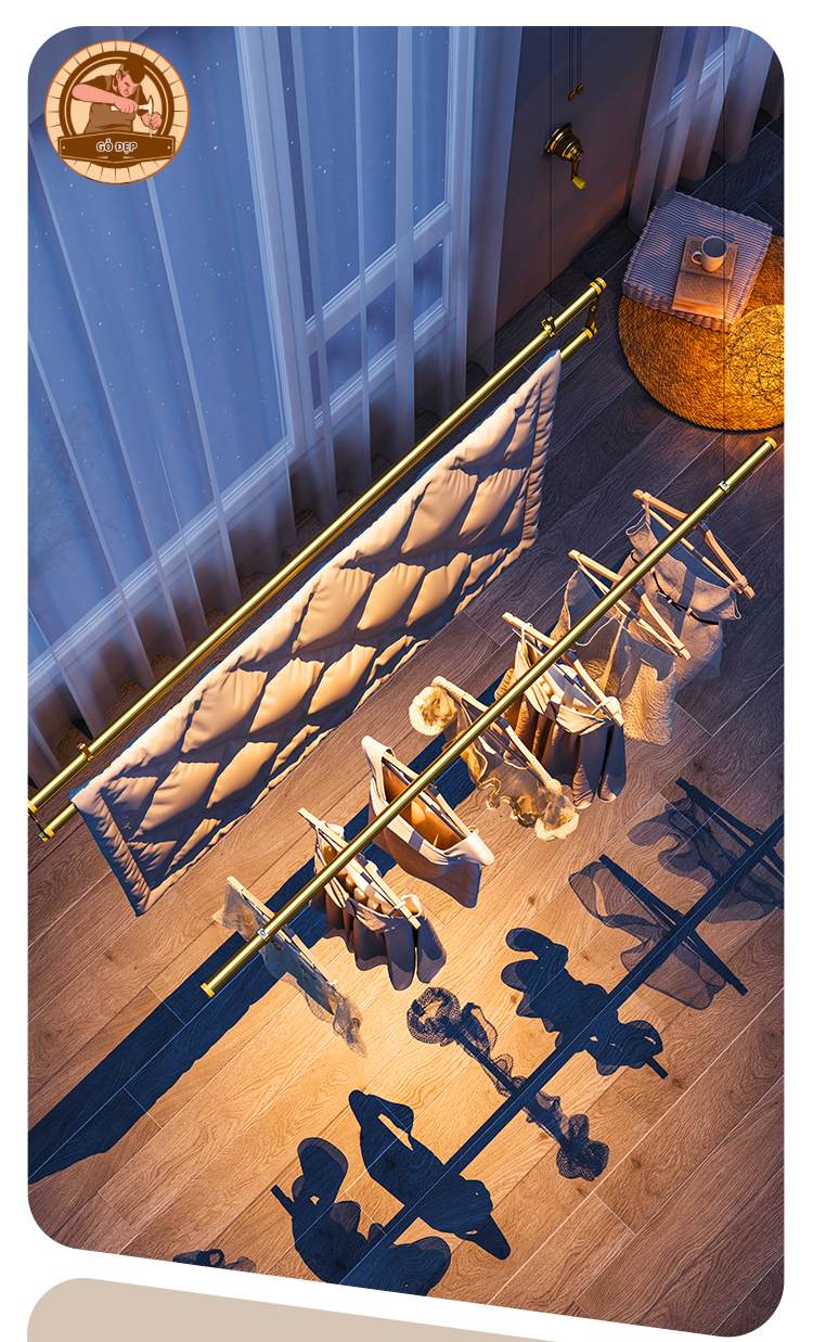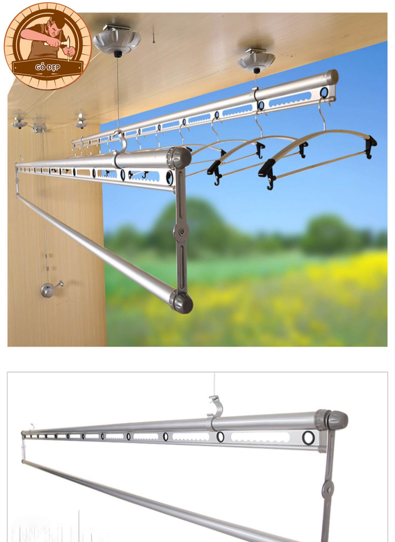 Quy cách: 2 thanh phơi có khuyên treo đồ và có thanh phơi chăn