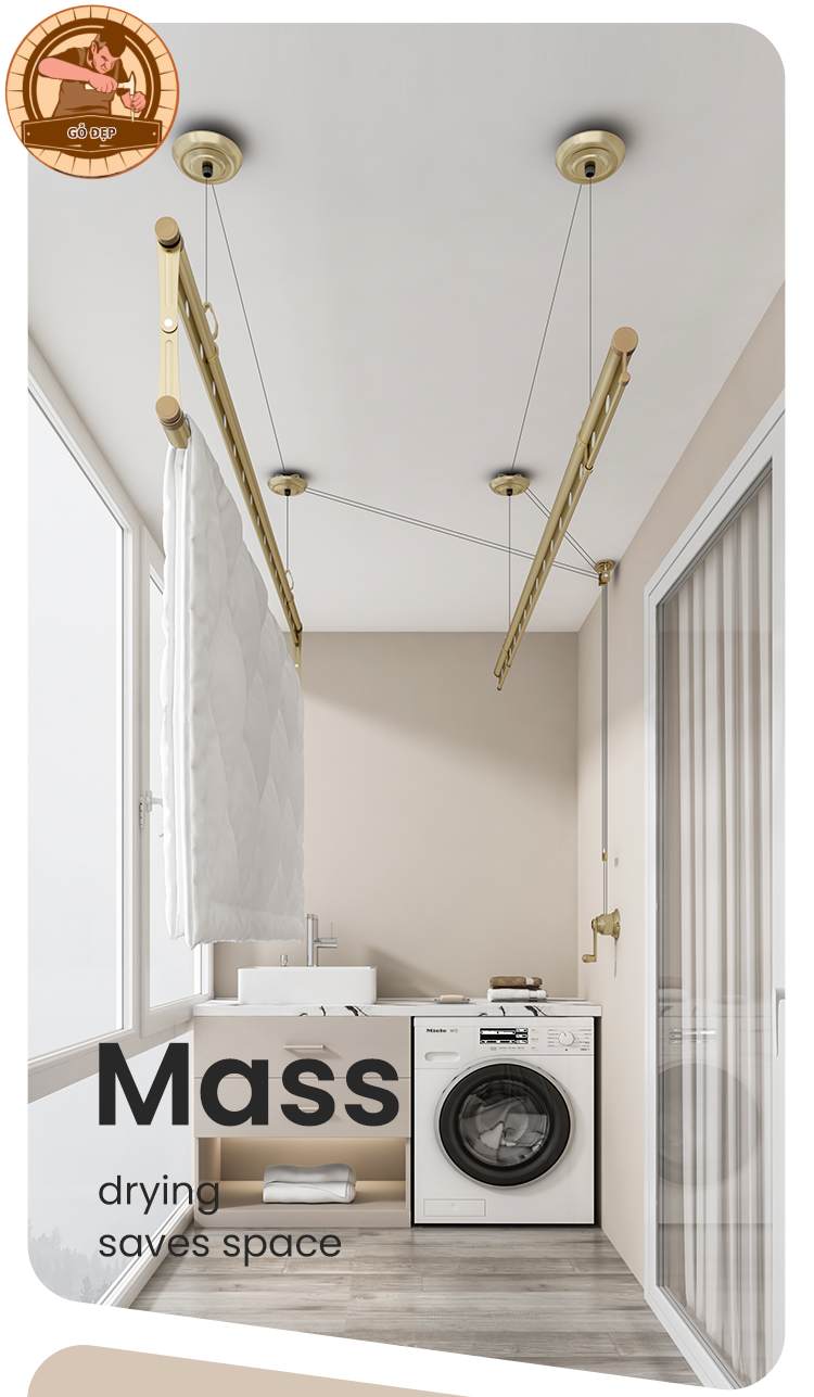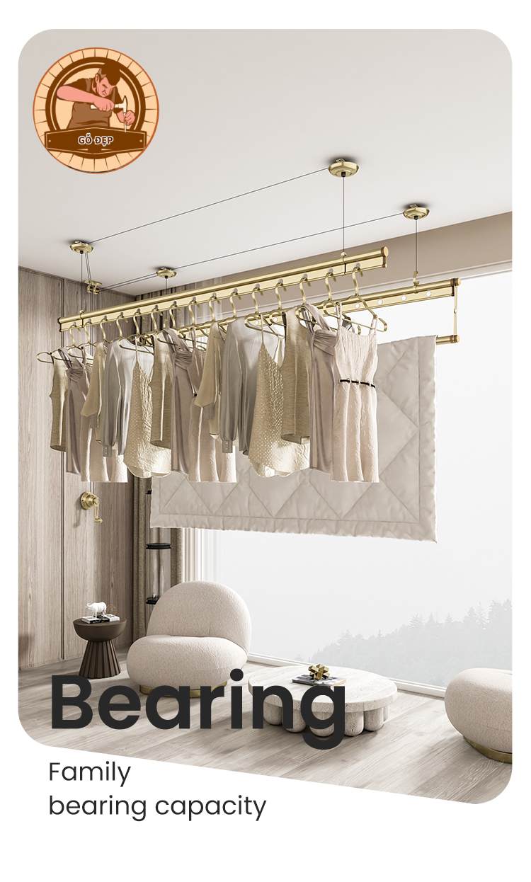Thiết kế thông minh và tính năng đa dạng của sản phẩm này giúp tối đa hóa diện tích phơi đồ và tiết kiệm không gian sử dụng chung trong căn nhà.