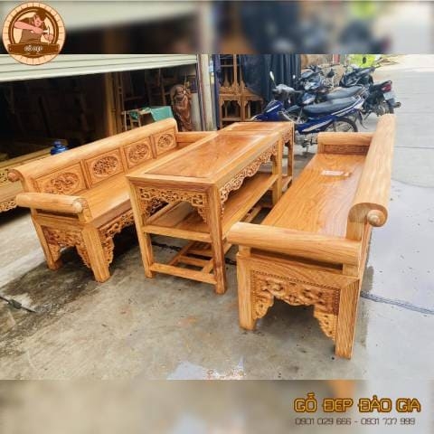 Gỗ Gõ Đỏ / Gỗ Hương - Điểm nhấn truyền thống: Nếu phòng khách của bạn theo phong cách Indochine hoặc Tân cổ điển, sự xuất hiện của một bộ bàn thờ gỗ gõ đỏ hay gỗ hương với màu sắc đỏ hồng tự nhiên sẽ là điểm nhấn "Đắt giá", tạo sự ấm cúng và bề thế. Tuy nhiên, cần khéo léo phối hợp để màu đỏ của gỗ không bị chọi với các màu sắc khác trong phòng.