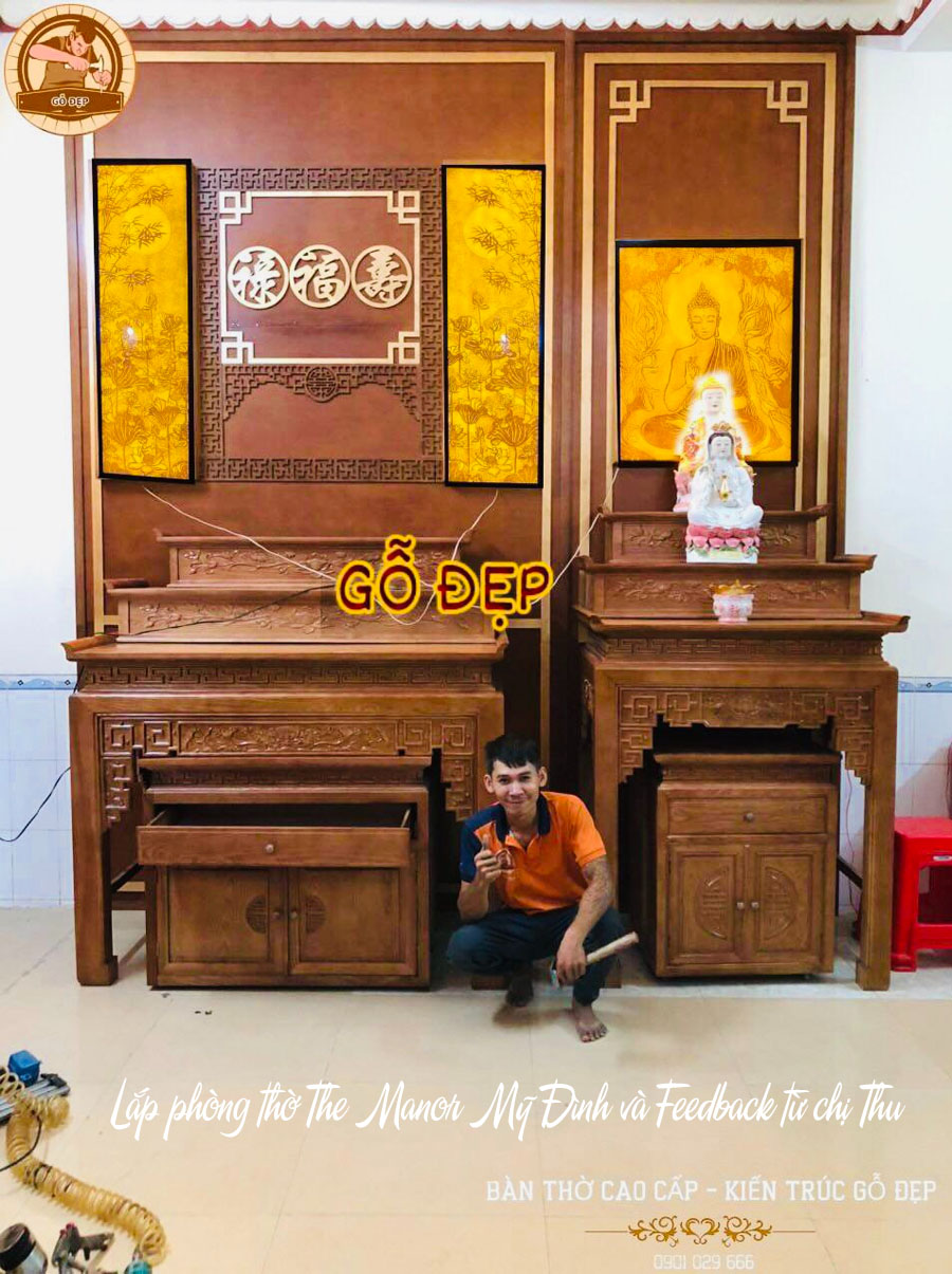Một trong những yếu tố khiến chị Thu hài lòng là đội ngũ lắp đặt của The Manor Mỹ Đình. Các kỹ thuật viên không chỉ thực hiện công việc một cách chuyên nghiệp mà còn rất chú ý đến từng chi tiết nhỏ. Đảm bảo rằng phòng thờ được thiết kế phù hợp với kích thước và nhu cầu sử dụng của gia đình.