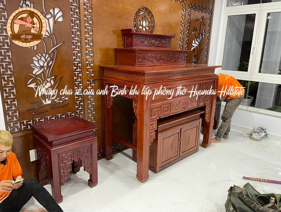 Được đo đạc và tính toán từ trước nên việc lắp phòng thờ Hyundai Hillstate diễn ra khá nhanh chóng và gọn gàng. Mọi công đoạn đều chăm chút, tỉ mỉ tránh khỏi rủi ro ở mức thấp nhất. Tôi rất hài lòng vì thái độ làm việc này.