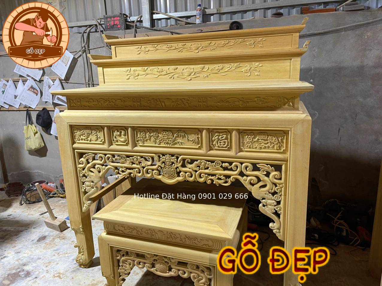 Mẫu Bàn thờ gỗ mít đang lúc mộc thô