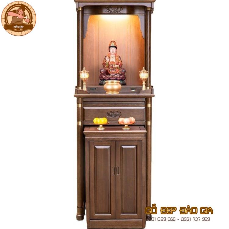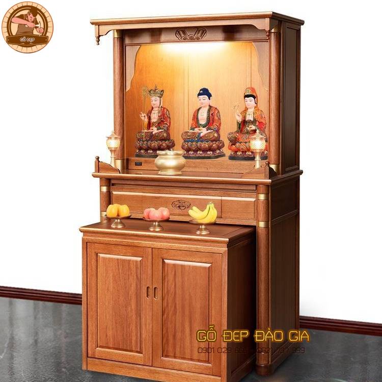 Bàn thờ Phật là một trong những sản phẩm tâm linh quan trọng trong mỗi gia đình Việt Nam. Không chỉ thể hiện lòng thành kính đối với Phật tổ, mà còn góp phần tạo nên không gian thanh tịnh, an lành trong ngôi nhà. Với sự kết hợp hoàn hảo giữa chất liệu gỗ tự nhiên và thiết kế tinh xảo. Bàn thờ Phật Gỗ Gõ của Gỗ Đẹp Đào Gia sẽ là lựa chọn lý tưởng để thờ cúng. Đồng thời nâng cao giá trị thẩm mỹ cho không gian thờ cúng của gia đình bạn.