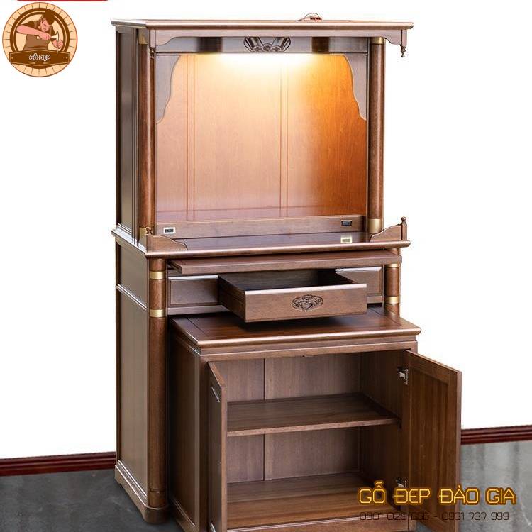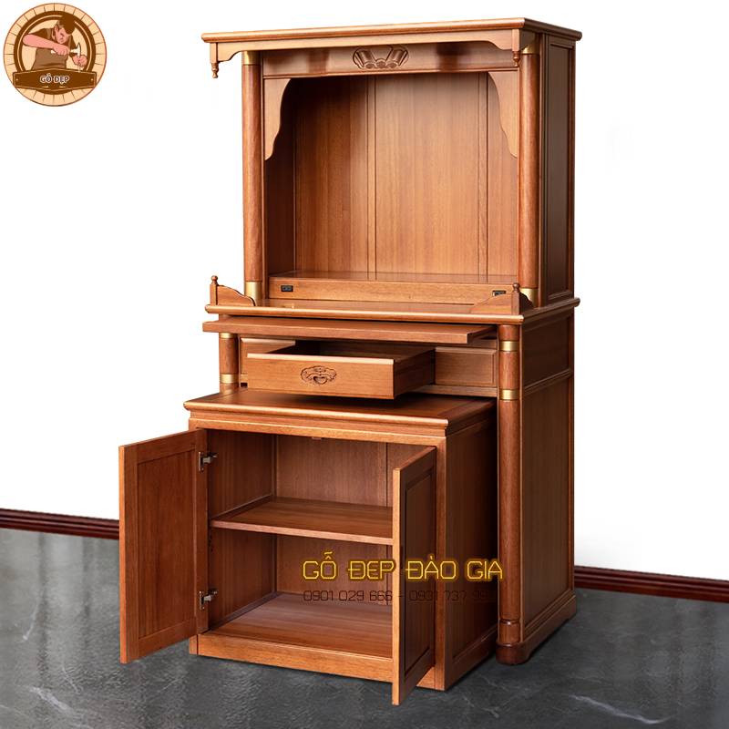 Bàn thờ Phật Gỗ Gõ của Gỗ Đẹp Đào Gia không chỉ được thiết kế với kiểu dáng đẹp mắt mà còn chú trọng đến sự tiện nghi trong quá trình sử dụng. Với các ngăn kéo, hộc tủ tiện lợi, bạn có thể dễ dàng lưu trữ các vật phẩm thờ cúng hoặc đồ dùng cần thiết một cách gọn gàng và ngăn nắp.