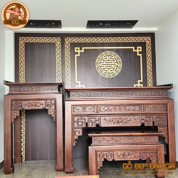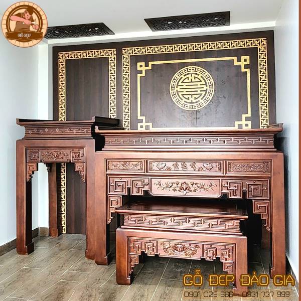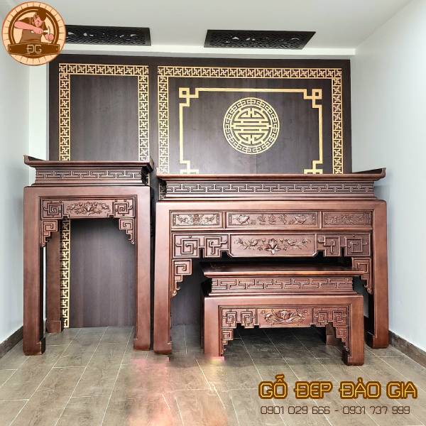 Gỗ Gõ: Với màu sắc đỏ đậm và vân gỗ rõ nét, gỗ gõ mang lại vẻ đẹp cổ điển và sang trọng, thích hợp cho không gian thờ cúng cần sự uy nghiêm.