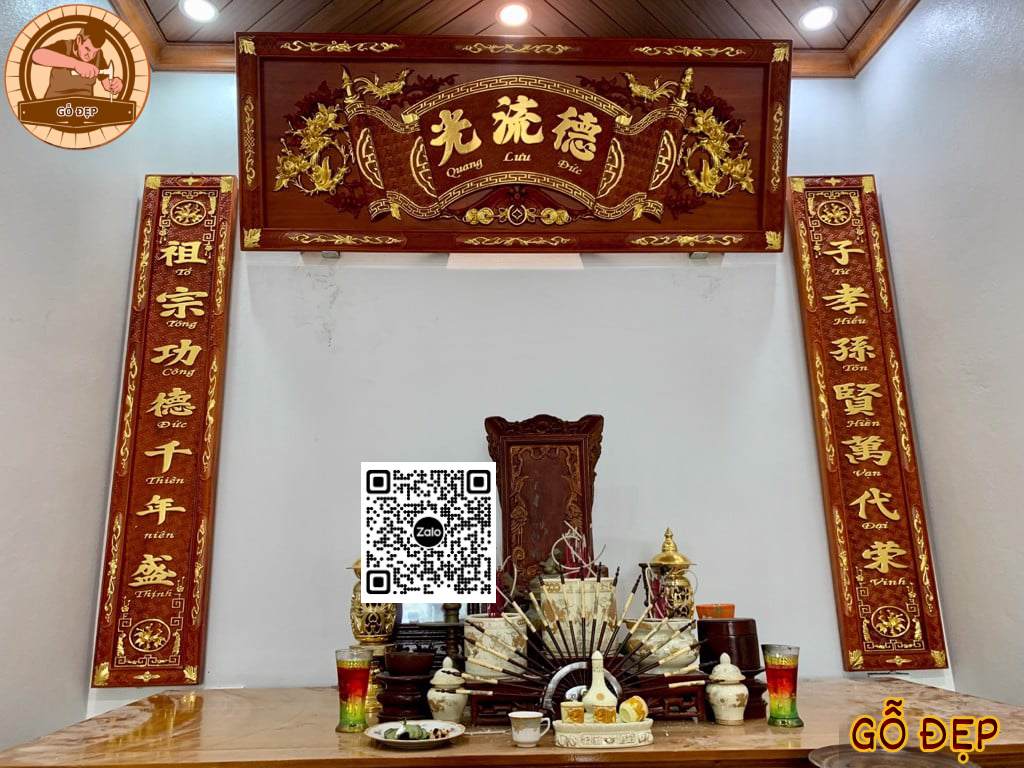 Với kích thước hoành phi và câu đối tương đối gọn (127cm chiều dài), sản phẩm rất phù hợp với các phòng thờ có diện tích vừa và nhỏ – đặc biệt là phòng thờ tại nhà phố, nhà ống, căn hộ chung cư hoặc nhà thờ họ quy mô nhỏ.