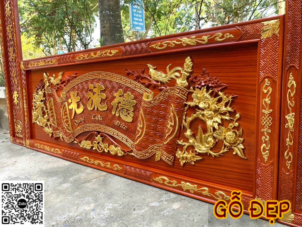 Họa tiết hoa văn dát vàng không chỉ tăng thẩm mỹ mà còn mang ý nghĩa phong thủy: hút tài lộc, vượng khí và thể hiện sự trường tồn – thịnh vượng cho gia đạo.