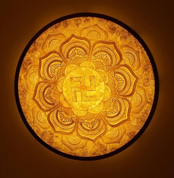 - Chất liệu: Tranh giấy dừa, Khung gỗ sồi, Hệ thống đèn Led King led