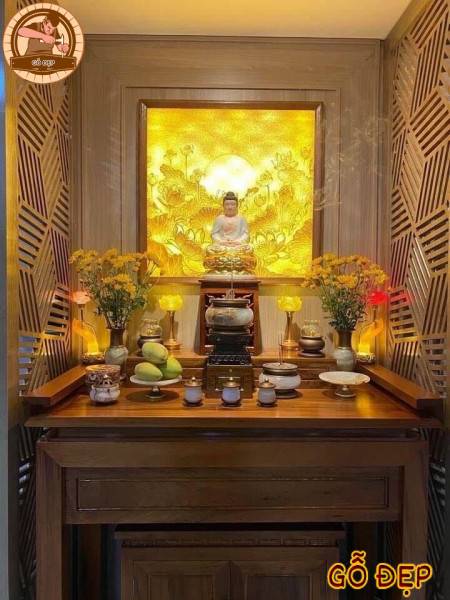 Kích thước tiêu chuẩn: 69 x 69 cm, phù hợp với nhiều kiểu bố trí trong phòng thờ hiện đại và truyền thống. Đây là kích thước được tính toán kỹ lưỡng theo chuẩn thước Lỗ Ban phong thủy, giúp mang lại may mắn, tài lộc và sự bình an cho gia chủ.
