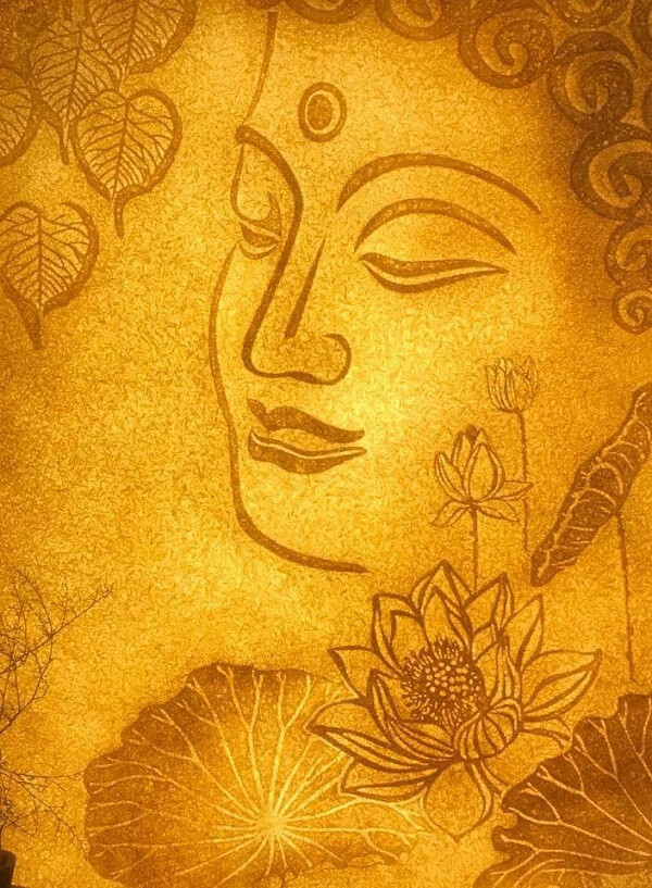 Bức tranh được thiết kế với hình ảnh những vị Phật thể hiện sự thanh tịnh và yên bình.