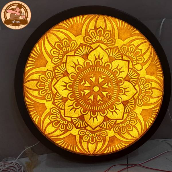 Chất liệu: Tranh giấy dừa, Khung gỗ sồi, Hệ thống đèn Led King led