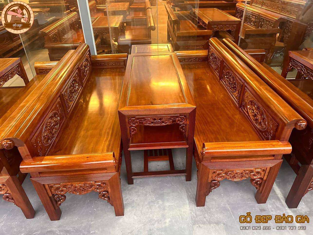 chương dày 10cm, vách dày 3cm , yếm dày 4cm, ván mặt ghế dày 2,5cm, ván mặt bàn dày 2cm