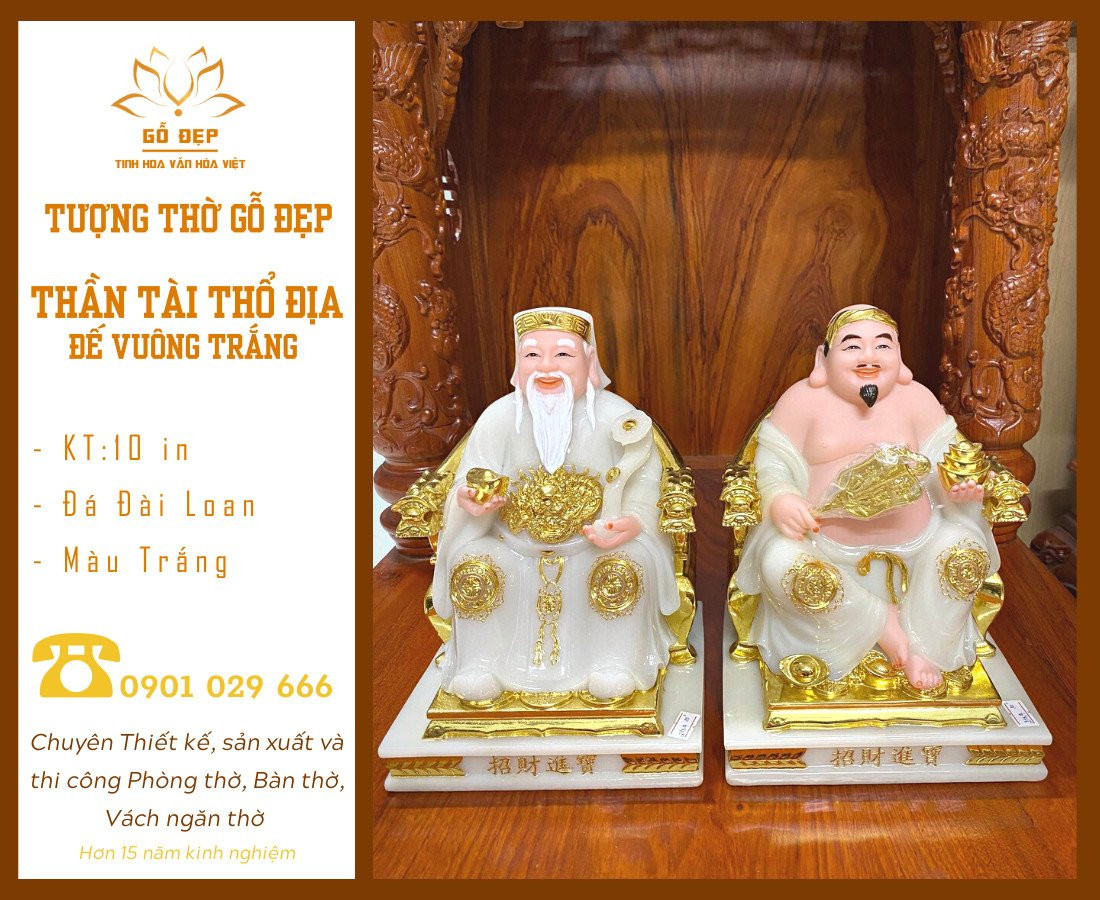 Tượng Thần Tài Thổ Địa Đế Vuông Trắng là một biểu tượng tôn giáo trong văn hóa dân gian và tín ngưỡng của một số người dân tại Việt Nam và Trung Quốc. Thần Tài Thổ Địa được tưởng tượng là vị thần bảo vệ tài lộc, giàu có và phú quý cho gia đình hoặc doanh nghiệp.