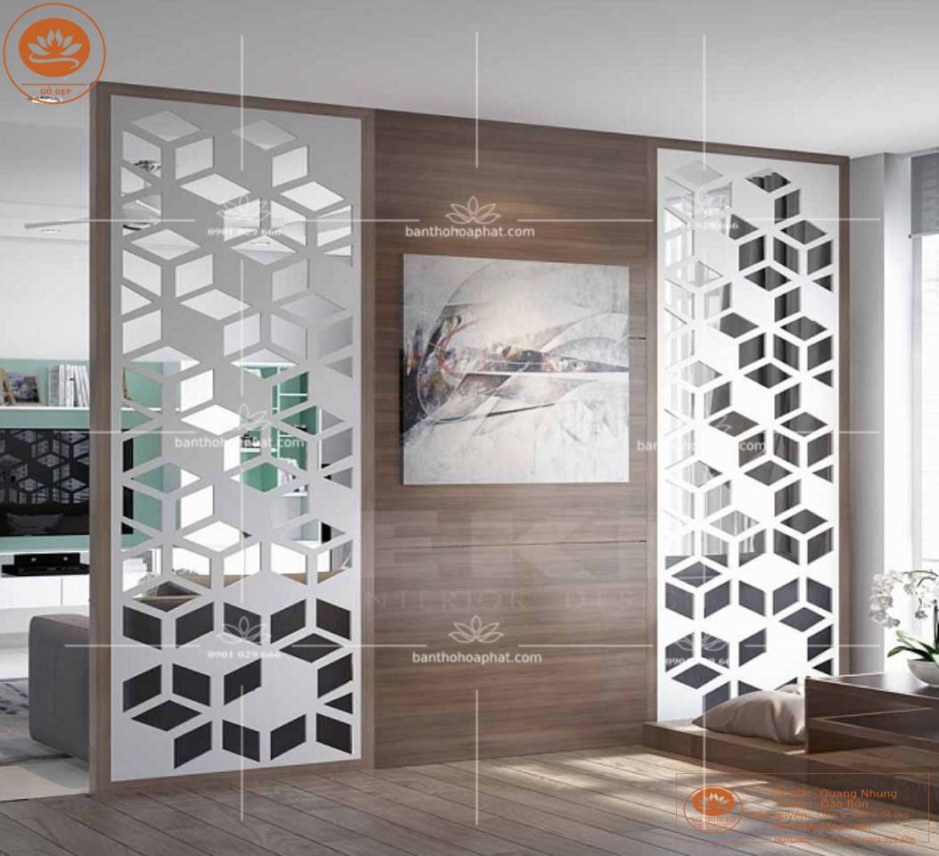 Vách Ngăn CNC Phòng Thờ - MS 05 đang rất được ưa chuộng hiện nay đặc biệt để ngăn phòng khách với phòng ngủ, phòng bếp hay phòng thờ, thậm chí vị trí bậc tam cấp cầu thang hiện nay rất nhiều gia đình đang muốn làm vách ngăn cnc kết hợp thanh trụ đứng vì tính thẩm mỹ cao.